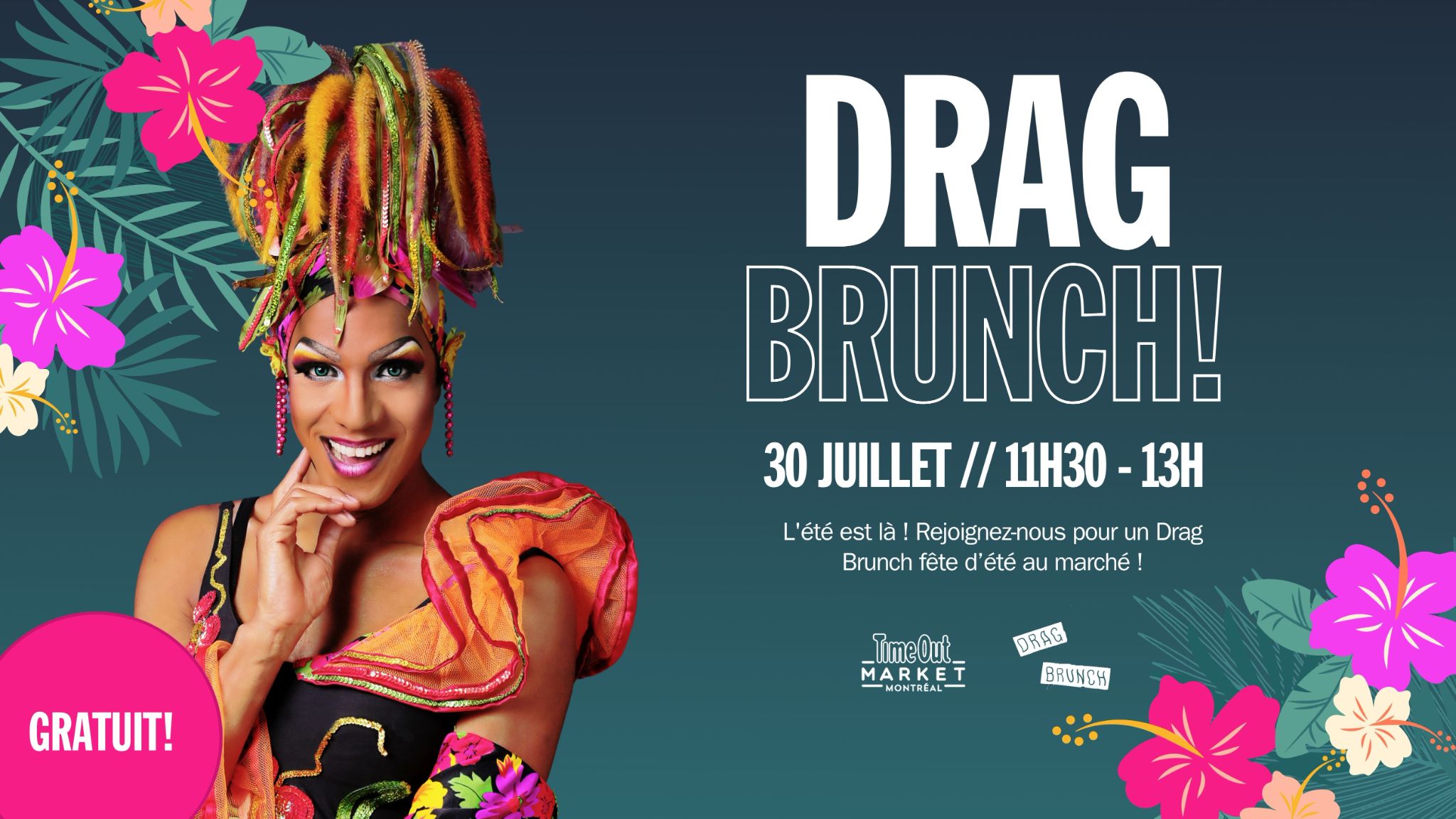 Un brunch gratuit et familial qui aura lieu le dimanche 30 juillet de 11 h 30 à 13 h avec la fabuleuse drag queen Barbada de Barbades.