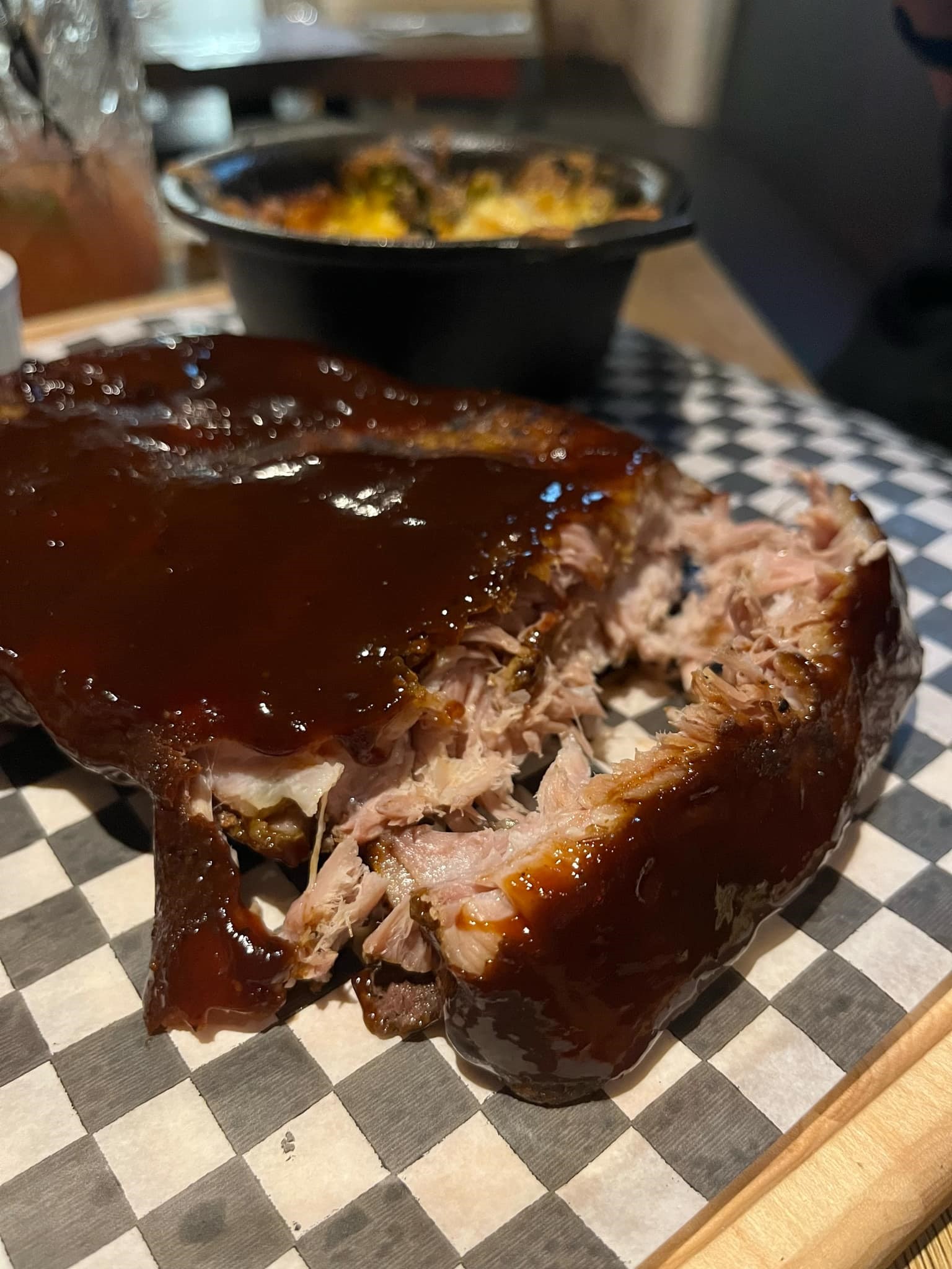 Mon amie n’avait jamais mangé de corn ribs donc elle avait très hâte d’essayer. Elle n’a pas été déçue, elle a beaucoup aimé le goût fumé et avec la sauce ranch, c’était parfait.