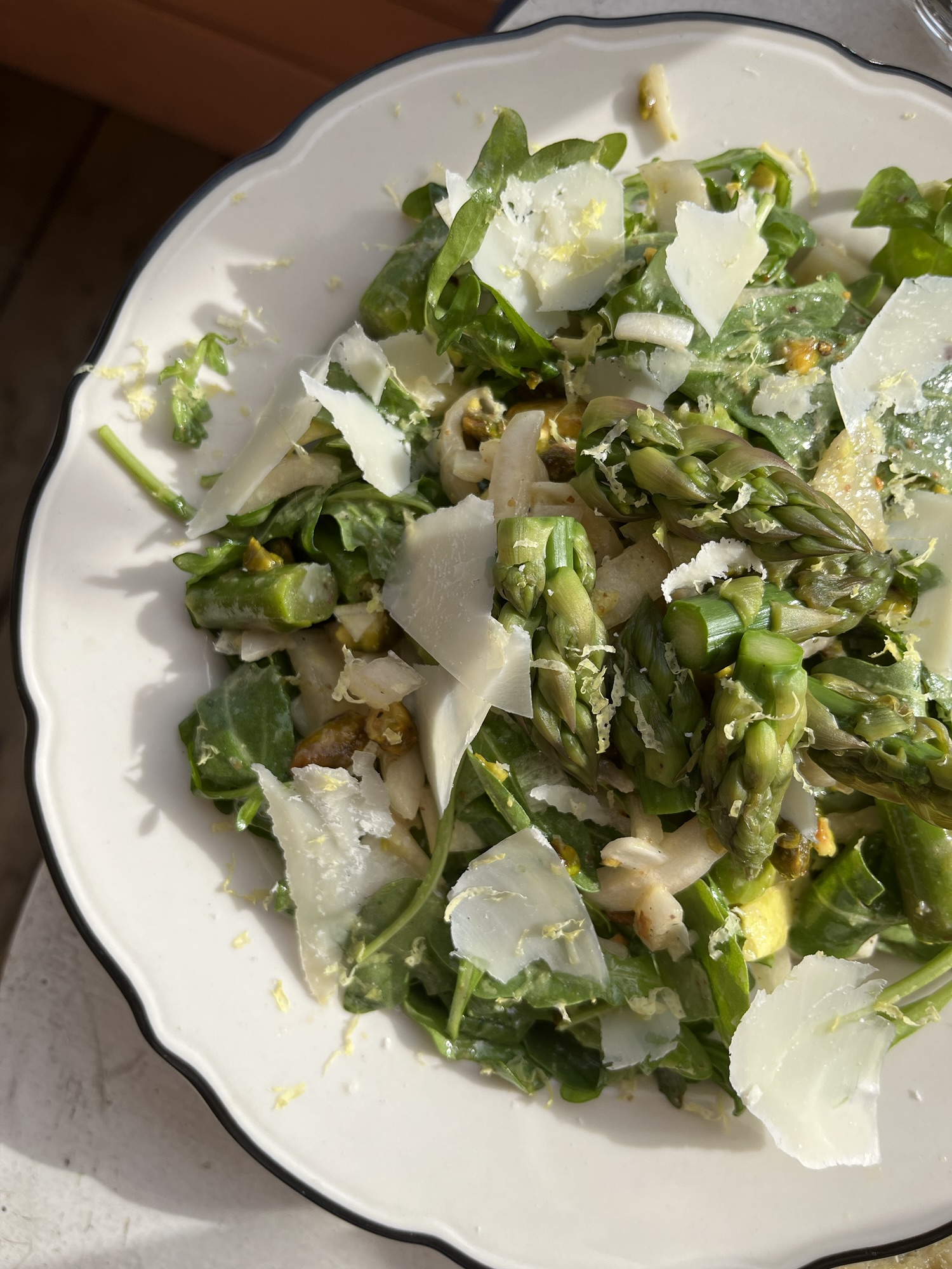 - Salade estivale (qui change au fil du temps) celle-ci était asperges, pistaches et parmesans.